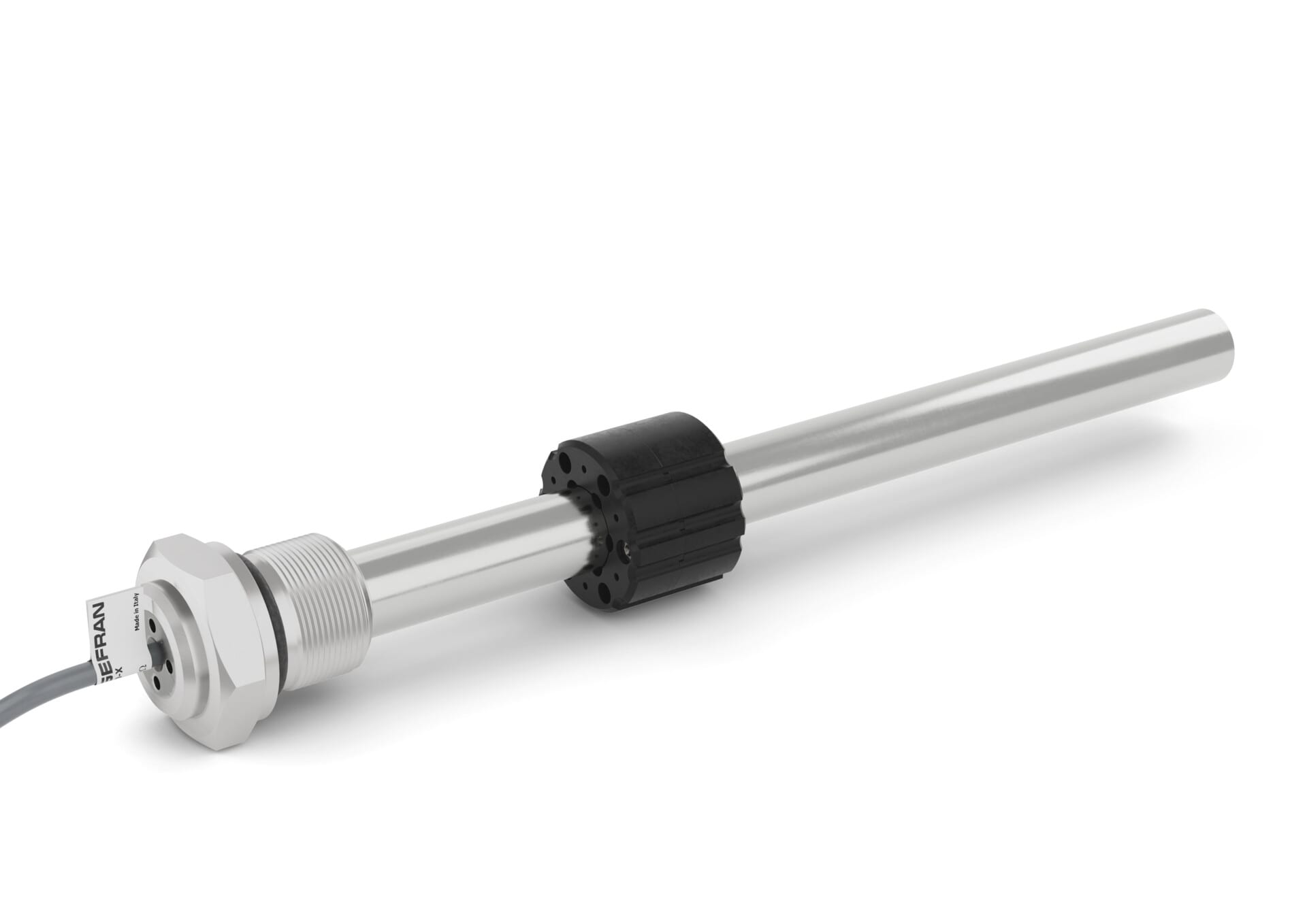 I trasduttori lineari ed angolari di posizione consentono il rilevamento della posizione di parti meccaniche in movimento. La rilevazione della posizione di tipo assoluta avviene in tempo reale grazie alla tecnologia potenziometrica dove pista resistiva e collettrice sono collegate elettricamente per mezzo di spazzole a contatto diretto, montate su di un cursore, datore fisico della posizione. Il corpo dei trasduttori di posizione e costituito da diversi materiali come l alluminio anodizzato, l acciaio inossidabile AISI 316 o in materiale plastico PBT caricato con fibre di vetro, dove quest ultimo e un polimero prevalentemente utilizzato nel settore automotive, resistente ai raggi UV, nebbie saline, acidi e altri agenti aggressivi. I potenziometri Gefransono partitori di tensione alimentabili da 1 a 60Vdc. Trasduttore rettilineo di posizione in INOX 316L con diametro 16 mm senza albero di trascinamento, completamente stagno (IP67) progettato per operare in ambienti umidi bagnati (CEI EN 60529). La seriePMI-12 e caratterizzata da un attuatore o cursore magnetico esterno accoppiato ad un cursore di misura interno dove il cursore magnetico sostituisce l albero di trascinamento utilizzato nei tradizionali trasduttori di posizione, eliminando ulteriori ingombri addizionali (brevetto depositato). Utilizzabile in applicazioni pneumatiche o oleodinamiche, installato all interno dei cilindri, con pressioni di esercizio max 250 bar. Grado di protezione ambientale IP67. Corse di misura elettrica da 50 a 1000 mm.