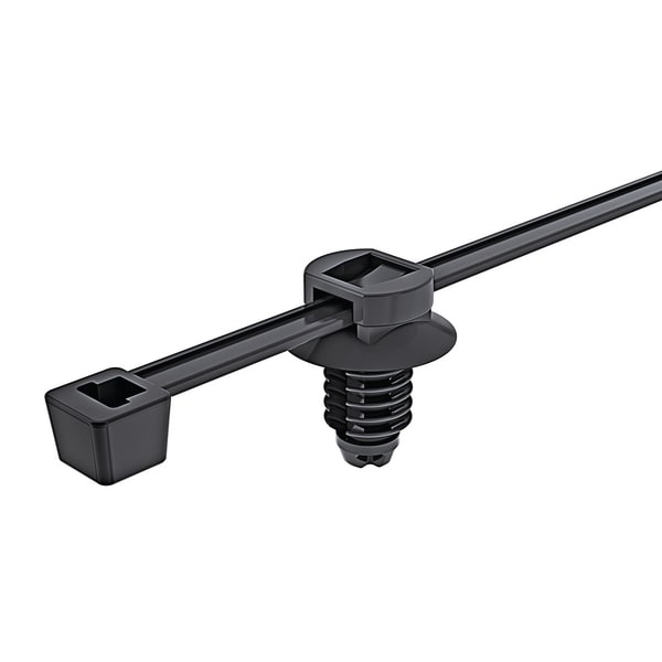 Fascetta 2-piece preassemblata con ancoraggio a pino. Facile da installare, anche senza attrezzo. La testa della fascetta può essere riposizionata dopo la legatura. Il disco è in grado di controbilanciare le pressioni sulla fascetta e minimizza l‘ingresso di polvere, sporco e acqua. L'ancoraggio a pino può essere utilizzato con pannelli di diversi spessori. Adatto ai fori filettati. Disegnate inizialmente per il fissaggio di cavi nei cablaggi del settore automotive, la semplicità e la facilità di utilizzo, hanno reso queste fascette utilizzabili ovunque: dagli aerei, alle lavatrici e agli elettrodomestici in genere.