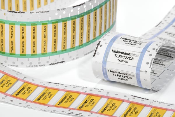 Rapporto di restringimento 2:1. Zero alogeni. Bassa propagazione, densità e tossicità dei fumi. Pretranciati a 50 mm, 25 mm e 16 mm come standard, altre lunghezze disponibili su richiesta. Disponibile in bianco e giallo. Per diametri di cavo da 38,1 mm a1,2 mm. Consegna in comode scatole per lo stoccaggio. Il TLFX DS è un materiale termorestringente zero alogeni approvato per l'industria ferroviaria europea con rapporto di restringimento 2:1, fornito pretagliato e disposto in un comodo formato a scaletta Ladder Style. Le speciali caratteristiche del materiale mostrano una bassa propagazione, densità e tossicità dei fumi. Il formato prespezzonato non solo permette la stampa su entrambi i lati del marcacavo, ma permette anche all'utente di scegliere e prelevare con facilità il marcacavo desiderato. La guaina viene preparata in modo da permettere una stampa eccellente grazie alle stampanti HellermannTyton.