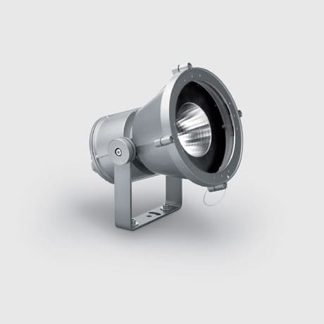 Proiettore finalizzato all'impiego di sorgenti luminose a LED COB Warm White, ottica flood. Installazione a pavimento, parete (tramite tasselli ancoranti) e su sistemi da palo. Costituito da vano ottico, vano componenti, cornice porta-vetro e staffa. Il vano ottico, vano componenti, cornice porta-vetro sono realizzati in lega di alluminio EN1706AC 46100LF, e sottoposti a un processo di pre-trattamento multi step, in cui le fasi principali sono sgrassaggio, fluorozirconatura (strato protettivo superficiale) e sigillatura (strato nano-strutturato ai silani). La fase successiva di verniciatura è realizzata con primer e vernice acrilica liquida, cotta a 150°C, che fornisce un'alta resistenza agli agenti atmosferici ed ai raggi UV. Il vetro di chiusura sodicocalcico temprato, spessore 4 mm, è trasparente incolore ed è completo di gurnizione. La guarnizione, in silicone 60 Shore A nero, viene sottoposta a trattamento di post-curing, in forno, per una durata di 4 ore a 220 °C. Il gruppo vetro più guarnizione èfissato alla corncie tramite silicone. Il prodotto è completo di circuito Led COB monocromatico colore warm white, ottica con riflettore OPTI-BEAM in alluminio superpuro 99,93% con trattamento superficiale di brillantatura e anodizzazione e alimentatore elettronico incorporato. Piastra porta-alimentatore in acciaio zincato; manutenzione straordinaria semplificata tramite connettori innesto rapido tra gruppo d'alimentazione e LED e tra gruppo d'alimentazione e morsettiera di cablaggio. Box e coperchio posteriori in lega di alluminio verniciato; distanziali e viti imperdibili; Il proiettore è orientabile nel piano verticale ±115° per mezzo di una staffa in acciaio verniciata, con scala graduata a passo 10° e provvista di blocchi meccanici che garantiscono il puntamento stabile del fascio luminoso; Il puntamento orizzontale avviene mediante i fori e le asole di cui la staffa è fornita; l'accesso al vano ottico è semplificato grazie ad una valvola di decompressione in ottone nichelato che annulla la depressione interna del prodotto. Predisposizione per cablaggio passante tramite doppio pressacavo M24x1,5 in ottone nichelato (idoneo per cavi di diametro 7÷16mm). Tutte le viterie esterne utilizzate sono in acciaio inox A2 e imperdibili. Le caratteristiche tecniche degli apparecchi sono conformi alle norme EN60598-1 e particolari. Gruppo di alimentazione completo di alimentatore elettronico dimmearbile 1-10V (220÷240Vac 50/60Hz) e morsetti ad innesto rapido. LED 24W, 3000lm. Efficienza luminosa (lm/W): 82. Warm3000K CRI80. Ottica: F - Flood 32°. Colore: Grigio.