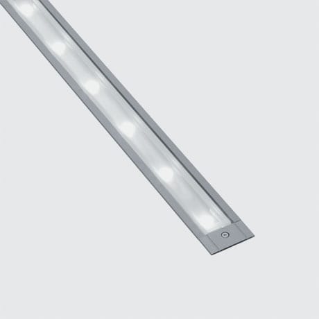 Apparecchio di illuminazione a luce diretta, finalizzato all’impiego di sorgenti luminose LED monocromatici Warm White, ottica WallWasher. Installazione ad incasso a pavimento, parete e soffitto. Costituito da corpo e controcassa per l’installazione da ordinareseparatamente. Corpo in alluminio estruso, con testate di estremità in pressofusione di alluminio complete di guarnizioni siliconiche.Processo di verniciatura con pre-trattamento multi step, in cui le fasi principali sono sgrassaggio, fluorozirconatura (strato protettivosuperficiale) e sigillatura (strato nanostrutturato ai silani). La fase successiva di verniciatura è realizzata con primer e vernice acrilicaliquida, cotta a 150°C, che fornisce un'alta resistenza agli agenti atmosferici ed ai raggi UV. Box inferiore per il cablaggio in PPS(polifenilensolfuro). Vano ottico chiuso superiormente da uno schermo in vetro trasparente, spessore 8mm, fissato con silicone.Completo di piastra multiled di potenza in colore Warm White con circuito elettronico 24Vdc (alimentatore da ordinareseparatamente). Driver 24V intelligente che permette l'emissione del flusso luminoso costante al variare della tensione d'ingresso (da30Vdc a 16Vdc). Provvisto di filtro diffondente in PMMA ed ottiche con lente in materiale plastico (metacrilato) per illuminazione WallWasher. Il box inferiore è fornito di due pressacavi PG11 in ottone nichelato per cablaggio passante, idonei per cavi Ø6,5÷11mm.Per il fissaggio del vano ottico alla controcassa o controsoffitto il prodotto è dotato di un sistema ad aggancio rapido tramite chiavi atesta esagonale. Controcassa per l'installazione in alluminio con tappi in tecnopolimero da ordinare separatamente. Tutte le vitiesterne utilizzate sono in acciaio inox A2. Le caratteristiche tecniche degli apparecchi sono conformi alle norme EN 60598-1 eparticolari. Dimensioni (mm): 1609x55x74. Colore: Grigio (15). LED 20W 1700lm - valori della sorgente luminosa. 20,8W 948lm - valori di sistema i. Efficienza luminosa (valore di sistema): 45lm/W. Warm 3000K CRI 80. Gruppo Elettronico PWM dimmerabile non fornito. Ottica: Wall Grazing.