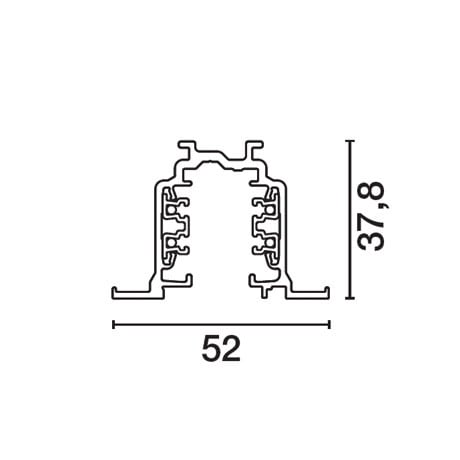 Materiale: alluminio estruso. Dimensioni (mm): 4000x52x37,8. Peso (kg): 3,15. Ambiente di utilizzo: Interni. Colore: Bianco.