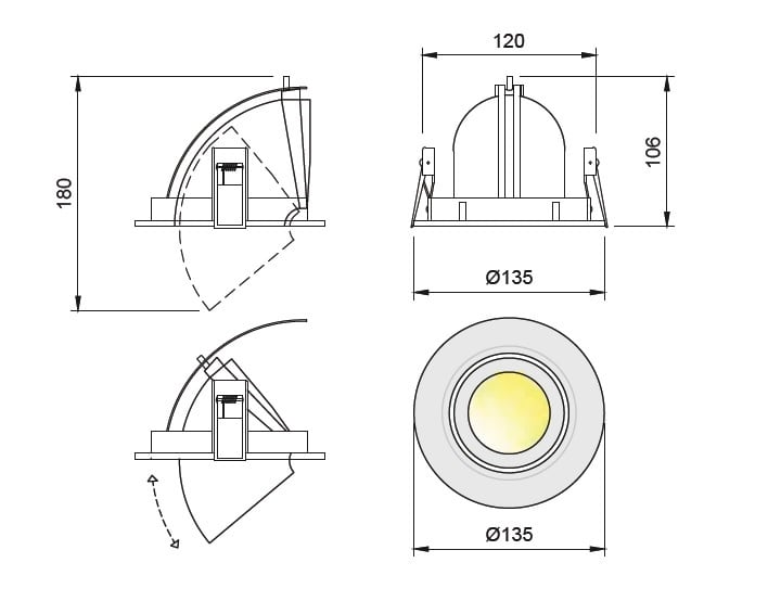 0730 Berin Led Mini . Orientabile: 355° . Corpo: Corpo in pressofusione di alluminio. Ottica: Riflettore in alluminio metallizzato puro 99,98 con vetro di protezione. Colore: Bianco. Alimentatore incluso. Lampada: LED 12W 1500Lm 3000K 50°.