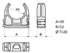Supporto fissatubo a scatto diametro 20 mm, in ABS, con incastro laterale per permettere l'accoppiamento anche tra FIS di diametri diversi. Idoneo per montaggio su guida GUI. Halogen Free e resistente UV. Colore grigio RAL 7035. Ideale per garantisce stabilità e facilità di installazione negli impianti elettrici a vista.