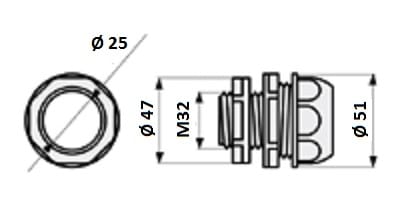 Raccordo tubo rigido o corrugato a scatola IP64-67 grigio PREG32