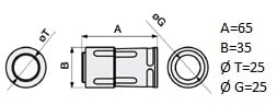 Raccordo tubo rigido-guaina pari diametro IP67 grigio in sacchetto da 6pz RTGN25
