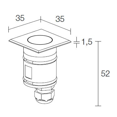 Bright 1.1 - Incasso uplight da esterno (non adatto per immersione); a incasso (soffitto, parete, pavimento); corpo e ghiera in acciaio inox AISI 316L, schermo in vetro trasparente temprato, 1 power LED; max 2W - max 500mA; incluso cavo in neoprene di 1,5 m H05RN-F 2x0,35/0,75 Ø6,3 mm; collegamento in serie; ottiche: 40°, colore LED: bianco 2700K; grado di protezione: IP68; grado di resistenza: IK10; dotato di sistema IPS; temperatura di esercizio: -20°C +45°C; temperatura schermo: max 40°C (Ta 25°C); Glow Wire Test: 960°; sicurezza fotobiologica: gruppo rischio 1 secondo EN62471:2006; classe di isolamento III; peso 0,20 kg; dimmerazione disponibile mediante alimentatore dimmerabile; accessori: cassaforma WC0201, cassaforma WC0202, molla di fissaggio WG0301 per installazione su cartongesso, nido d’ape WH0101. LED bianco 2W 500mA 2700K 40°. 35x35x52 mm.