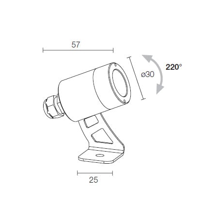 SPOT 1.6 - Proiettore da esterno (non adatto per immersione) orientabile 220°; su superficie (soffitto, parete, pavimento, picchetto); corpo e ghiera in acciaio inox AISI 316L; 1 power LEDmax 2W - 24Vdc; incluso cavo in neoprene di 1,5 m H05RN-F 2x0,35/0,75 Ø6,3 mm; flusso totale: 88 lm (3000K); ottiche: 40°; colore LED: bianco - 3000K; grado di protezione: IP68; grado di resistenza: IK08; dotato di sistema IPS; temperatura di esercizio: -20°C+45°C; Glow wire test: 960°; sicurezza fotobiologica: gruppo rischio 1 secondo EN62471:2006; classe di isolamento III; peso 0,27 kg; dimensioni Ø30x57mm; dimmerazione disponibile mediante dimmer in linea 24Vdc; accessori: picchetto WP0100, cannocchiale standard in acciaio inox WB0320I, cannocchiale asimmetrico in acciaio inox WB0321I, nido d’ape WH0101. LED 2W 3000K 88 lm 40°.