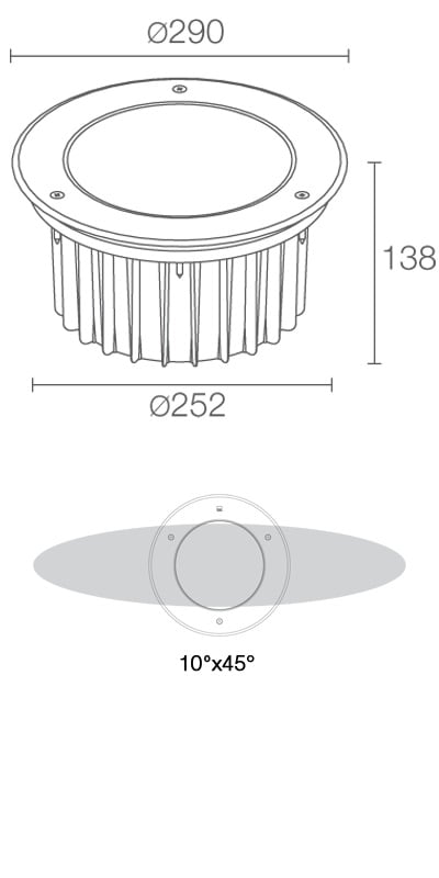 Incasso uplight da esterno; a incasso (pavimento); 37W; 230Vac; Flusso sorgente: 3402 lm. 4000 K. 30°