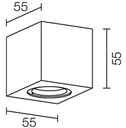 Apparecchio a plafone da interno o esterno; 6W - 350/500mA; 3 power LED; 3000K; CRI: 75÷85; ottica inclinata di 20° con schermo frontale satinato: 40°; flusso totale: 295 lm (3000K a 500mA); corpo in alluminio anticorodal estruso, schermo in policarbonato mono-satinato; finitura: bianco; temperatura di esercizio: -10°C +45°C; temperatura vetro: max 40°C (Ta 25°C); grado di protezione contro i liquidi e i corpi solidi: IP54; sicurezza fotobiologica: gruppo rischio 1 secondo EN62471:2006; montaggio con viti e tasselli; classe di isolamento III; peso 0,33kg; dimensioni 55x55x55mm; collegamento in serie con 2 cavi unipolari da 30cm; dimmerazione disponibile mediante alimentatore dimmerabile.