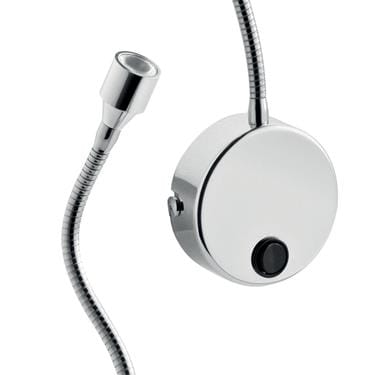 Lampada da lettura; 1W - 230Vac 50Hz; 1 power LED; 3000K; CRI: 75÷85; ottiche: 25°; flusso totale: 103 lm (3000K a 500mA); corpo in alluminio, schermo in PMMA; finitura: nichel satinato; temperatura di esercizio: 0°C +45°C; grado di protezione contro i liquidi e i corpi solidi: IP20; sicurezza fotobiologica: gruppo rischio 1 secondo EN62471:2006; montaggio con viti e tasselli; classe di isolamento I; peso 0,34kg; dimensioni ø22x31, stelo flessibile ø8x400mm, piastrina ø78mm; collegamento 230Vac 50Hz, concavo con morsetto di connessione; alimentatore integrato.
