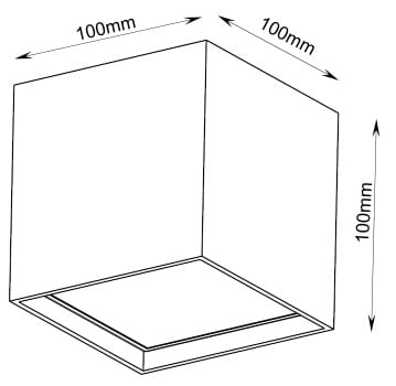 Apparecchio a plafone da interno; 17W – 230Vac 50Hz; 4000K; CRI: >80; luce diffusa; corpo in alluminio lega EN AW 6012, schermo in PMMA; finitura: bianco opaco Ral9003; temperatura di esercizio: 0°C +45°C; grado di protezione contro i liquidi e i corpi solidi: IP40; sicurezza fotobiologica: gruppo rischio 1 secondo EN62471:2006; montaggio con base posteriore fissata con viti e tasselli, aggancio con molle; classe di isolamento I; peso 0,60kg; dimensioni 100x100x100mm; collegamento 230Vac 50Hz; alimentatore integrato.