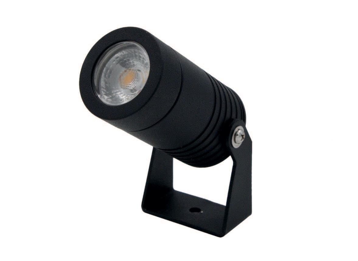 Mini proiettore LED 6W - 230V orientabile per interno ed esterno lenti facilmente intercambiabili incluse. Corpo Lega alluminio. Lente da 60° montata sul faretto. Lenti da 15° e 30° intercambiabili. Picchetto di fissaggio non incluso. LED 6W 450lm 4000K CRI >80 - 15° - 30° - 60°. Finitura nero.