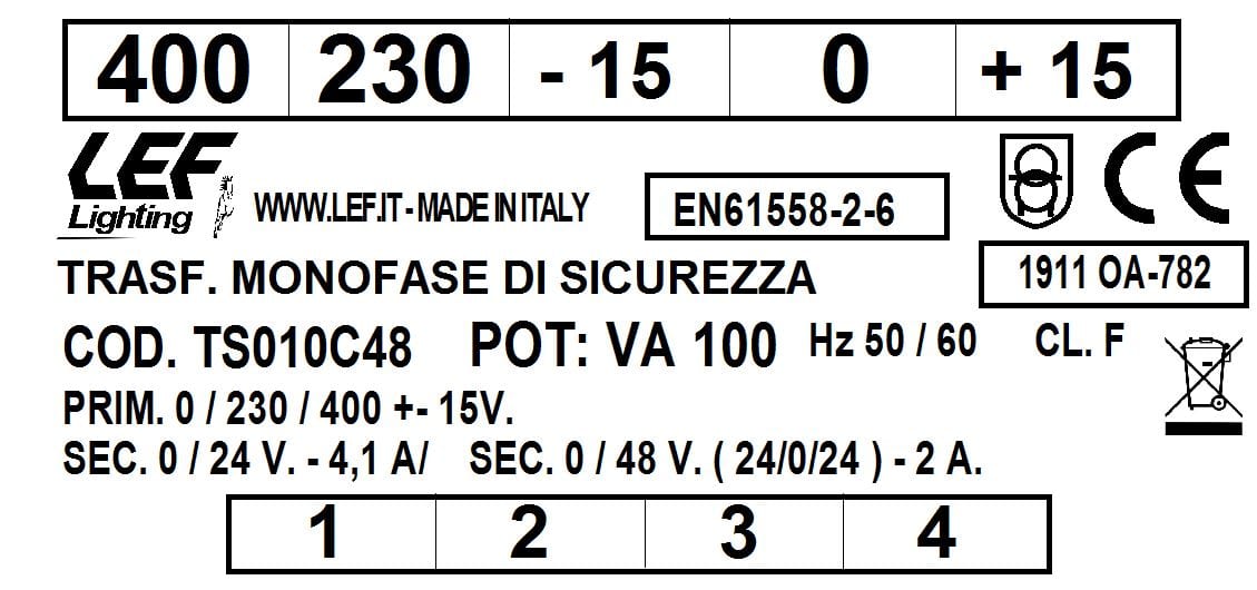 L.E.F. SRL - LEFTS010C48 T.M. 100VA 230.400V / 24?48V - TS010C48