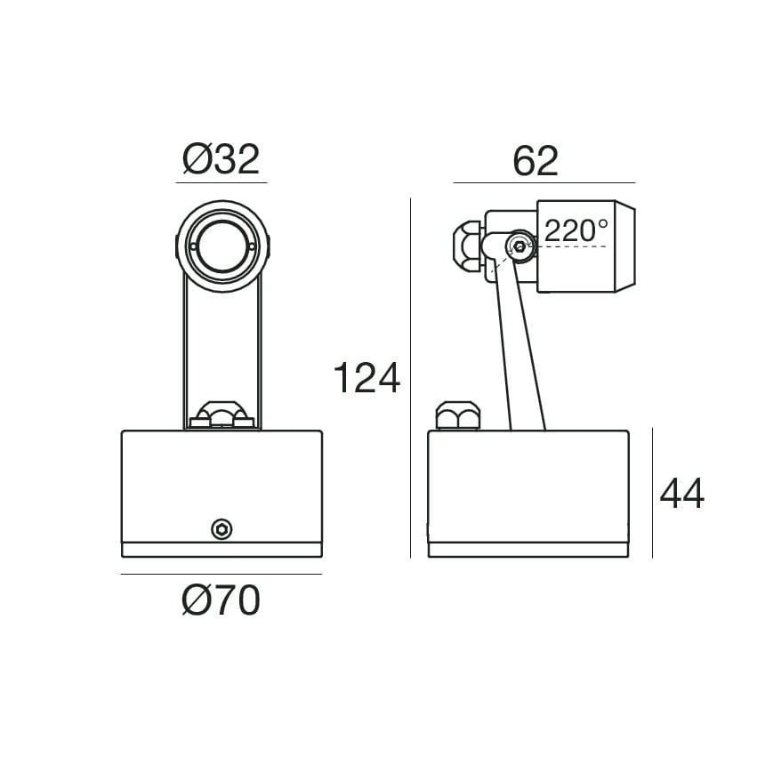 Proiettori a singola emissione per applicazione outdoor. La sorgente luminosa LED, di colore bianco caldo, con distribuzione luminosa Adjustable, è composta da 1 LED powerled, con una CCT 3000 K ed un CRI 80; il flusso luminoso della sorgente è di 233lm, con un'efficienza nominale di 116.5 lm/W.