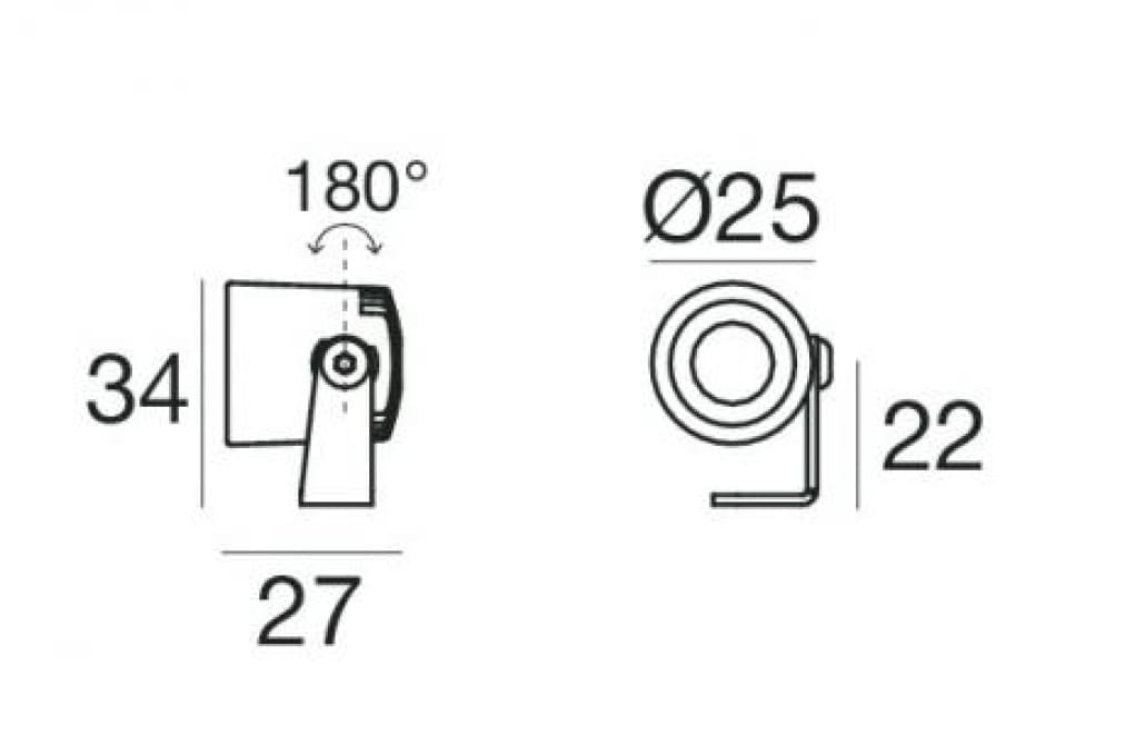 Faretto a singola emissione per applicazione indoor. La sorgente luminosa LED, di colore bianco caldo, con distribuzione luminosa 15°, è composta da 1 LED powerled, con una CCT 3000 K ed un CRI 80; il flusso luminoso della sorgente è di 208 lm, con un'efficienza nominale di 104.0 lm/W. Il corpo dell'apparecchio, realizzato in alluminio, presenta una finitura di colore grigio goffrato, ottenuta tramite verniciatura. Il grado di protezione è IP40; il peso complessivo è di 0.08 kg. Il driver d’alimentazionenon è fornito e deve essere ordinato separatamente. La potenza assorbita dall'apparecchio è di 2,0 W. Il cavo per l'alimentazione è incluso e presenta una lunghezza di 1 m. L'apparecchio presenta una classe di isolamento III ed è installabile a parete, pavimento o soffitto.