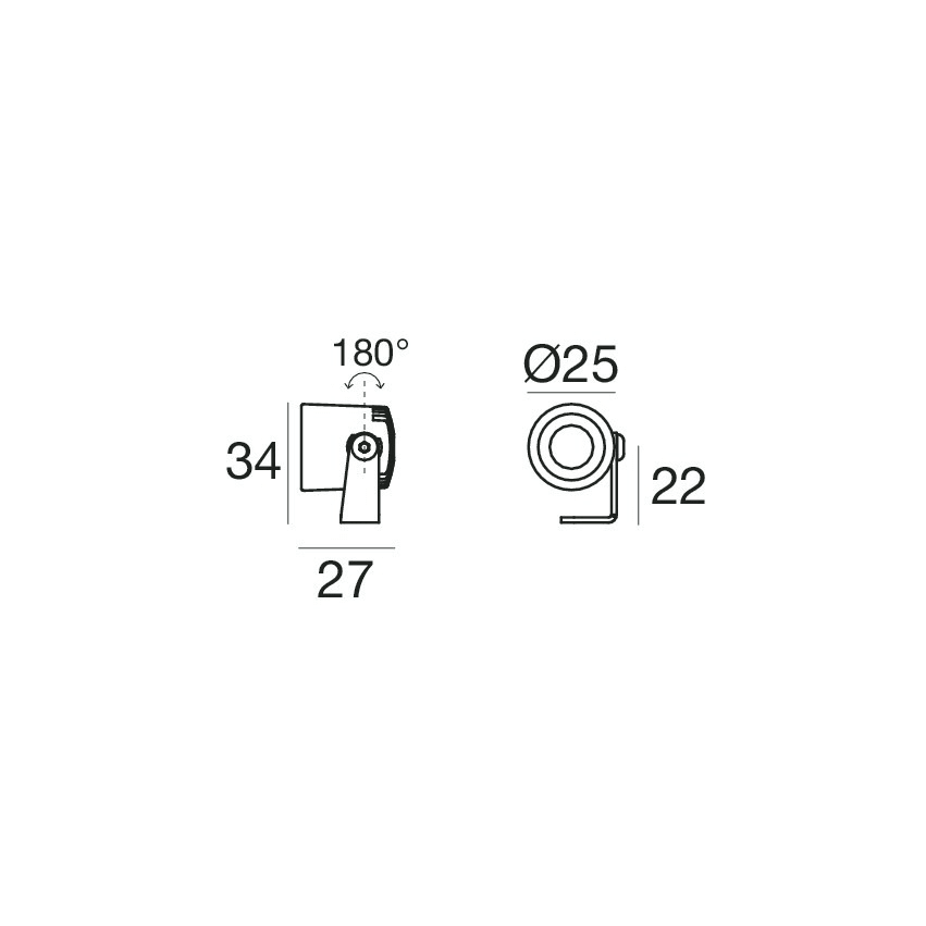 Proiettori a singola emissione per applicazione indoor. La sorgente luminosa LED, di colore bianco caldo, con distribuzione luminosa Flood, è composta da 1 LED powerled, con una CCT 3000 K ed un CRI 80; il flusso luminoso della sorgente è di 208 lm, con un'efficienza nominale di 104.0 lm/W. Il corpo dell'apparecchio, realizzato in alluminio, presenta una finitura di colore grigio ral 9006 goffrato, ottenuta tramite verniciatura. Il grado di protezione è IP40; il peso complessivo è di 0.08 kg. Il driver d’alimentazione non è fornito e deve essere ordinato separatamente. La potenza assorbita dall'apparecchio è di 2,0 W. Il cavo per l'alimentazione è incluso e presenta. L'apparecchio presenta una classe di isolamento III ed è installabile a parete, soffittoo pavimento.
