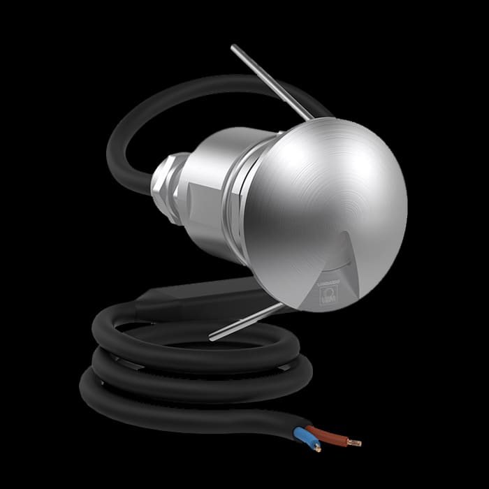 Adatto per installazioni a parete e controsoffittature in cartongesso, anche per uso esterno. Idoneo per incassi da terra ad uso calpestabile, carico max 500 kg, fissaggio mediante armatura da incasso fornita a parte. Prodotto finalizzato all’impiego disorgenti luminose a LED per luce di accento e segnalazione. Corpo e ghiere in acciaio AISI316L. Diffusore in vetro temprato. Guarnizioni in silicone. 1.5 m di cavo di alimentazione H05RN-F pre-cablato e bloccato tramite pressacavo in Ottone Nichelato. La molla di ritenuta si adatta sia per applicazioni che prevedono l'utilizzo di armatura da incasso che direttamente in controsoffittature in cartongesso. Dimmerazione disponibile. Bulloneria in acciaio inox A4 o AISI 316L. Versione in corrente costante: tutti i cavi vengono forniti integrati di un sistema elettronico che consente il collegamento non polarizzato del faretto. Il dispositivo elettronico inoltre, impedisce l'interruzione di linee di faretti collegati in serie nel caso di guasto di un singoloprodotto. La speciale guaina che riveste il circuito protegge il faretto dalle infiltrazioni di acqua e umidità. Utilizzare esclusivamente alimentatori di tipo SELV o equivalenti. Versione in tensione 12/24 V: Tutti i cavi sono provvisti di una speciale guaina che protegge il faretto dalle infiltrazioni di acqua e umidità. LED Blu. Alimentatore escluso. Nessun rischio fotobiologico, RG0 gruppo di rischio esente (EN62471). Versione ghiera Top con apertura a 45°. Temperatura massima rilevata sul vetro 65°C. Tipo lampada: 1 LED - 500mA 180 lm - 2W - 4.8V. real output lm 12. Versione a led senza alimentatore.
