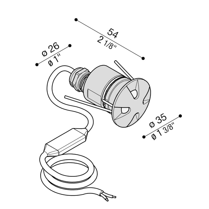 Adatto per installazioni a parete e controsoffittature in cartongesso, anche per uso esterno. Idoneo per incassi da terra ad uso calpestabile, carico max 500 kg, fissaggio mediante armatura da incasso fornita a parte. Prodotto finalizzato all’impiego di sorgenti luminose a LED per luce di accento e segnalazione. Corpo e ghiere in acciaio AISI316L. Diffusore in vetro temprato. Guarnizioni in silicone. 1.5 m di cavo di alimentazione H05RN-F pre-cablato e bloccato tramite pressacavo in Ottone Nichelato. La molla di ritenuta si adatta sia per applicazioni che prevedono l'utilizzo di armatura da incasso che direttamente in controsoffittature in cartongesso. Dimmerazione disponibile. Bulloneria in acciaio inox A4 o AISI 316L. Tutti i cavi vengono forniti integrati di un sistema elettronico che consente il collegamento non polarizzato del faretto. Il dispositivo elettronico inoltre, impedisce l'interruzione di linee di faretti collegati in serie nel caso di guasto di un singolo prodotto.La speciale guaina che riveste il circuito protegge il faretto dalle infiltrazioni di acqua e umidità. Alimentatore escluso. Nessun rischio fotobiologico, RG0 gruppo di rischio esente (EN62471). Versione ghiera Mask con 4 aperture da 35°. Temperatura massima rilevata sul vetro 65°C. Lampada 1 LED - 500mA 140 lm - 2W - 4.8V real output lm 21 3000K. Versione a led senza alimentatore.