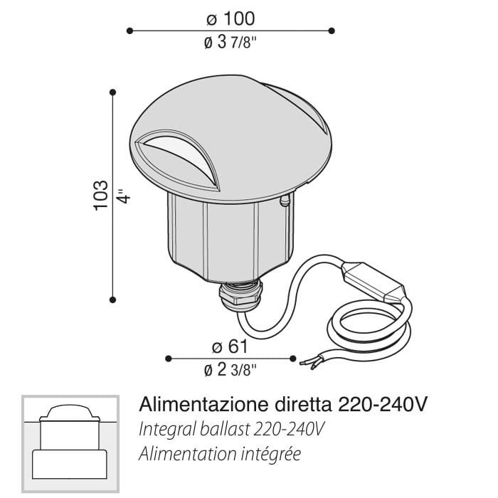 Diametro foro montaggio ad incasso: