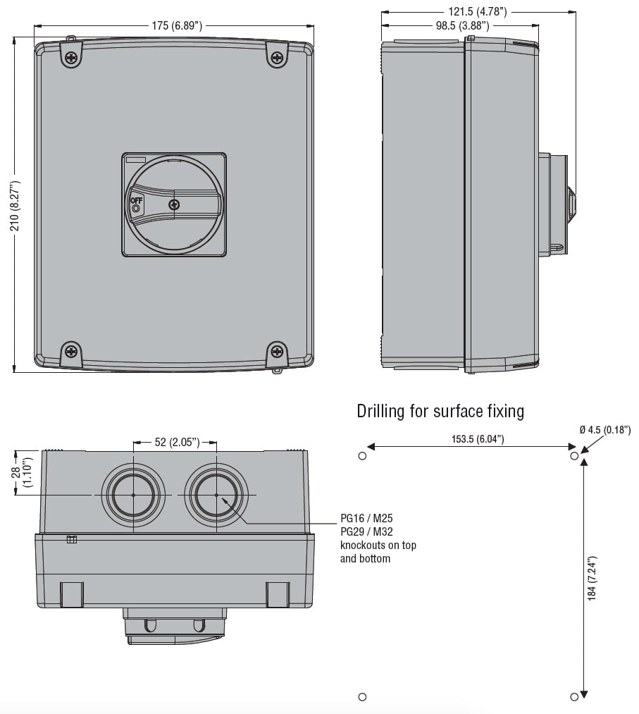Adatto per fissaggio frontale a 4 fori: