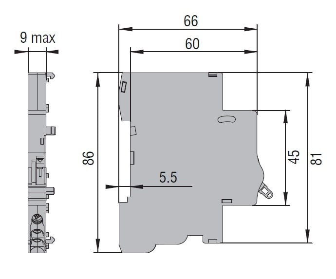 CONTATTO DI SEGNALAZIONE PER INTERVENTO MAGNETICO E TERMICO, 1 CONTATTO IN SCAMBIO, MONTAGGIO SUL FIANCO