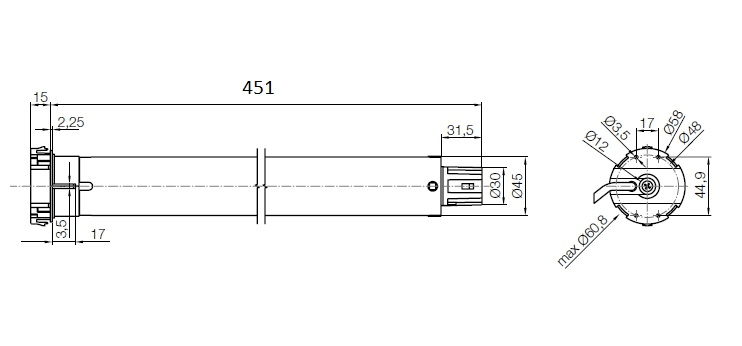 Finecorsa meccanico. 15 Nm, 17 rpm, 28 kg. Motore tubolare con finecorsa meccanico. Taglia M 45 mm. Adatto sia ad applicazioni di grandi dimensioni, con la versione da 50 Nm a 12 rpm, sia a piccole strutture con la versione ad alta velocità 26 rpm a 4 Nm. Regolazione intuitiva delle posizioni limite di salita e discesa grazie al finecorsa meccanico. Facile da installare grazie al nuovo supporto compatto e all’innovativo sistema di fissaggio della ruota di trascinamento ad innesto. Collegamento ai sensoriclimatici, via filo e/o radio, con l'ausilio di centrali esterne.