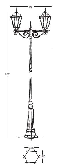 NOBILE ILLUMINAZIONE - NOB2051/09/02/NE/S LAMPIONE H297 2 LUCI ESAGON. NE DIFF.SAT - 2051/09/02/NE/S