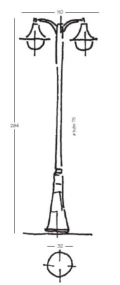 NOBILE ILLUMINAZIONE - NOB2082/09/06/NA LAMPIONE H284 2 LUCI LAMPARA GRANDE NA - 2082/09/06/NA