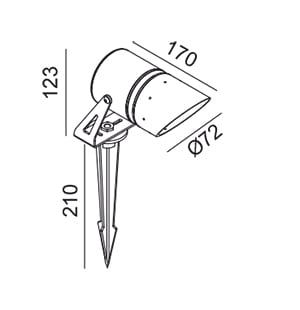 Proiettore LED con staffa e picchetto per installazione a pavimento. LED CREE. Life time 50.000h (rendimento 70%). Corpo in alluminio anodizzato. Cavo in neoprene H05RN-F 3x1mm2 di 1,5m. Alimentatore 220-240V 50/60Hz incluso. LED 15W 650Lm 3000K 15°.