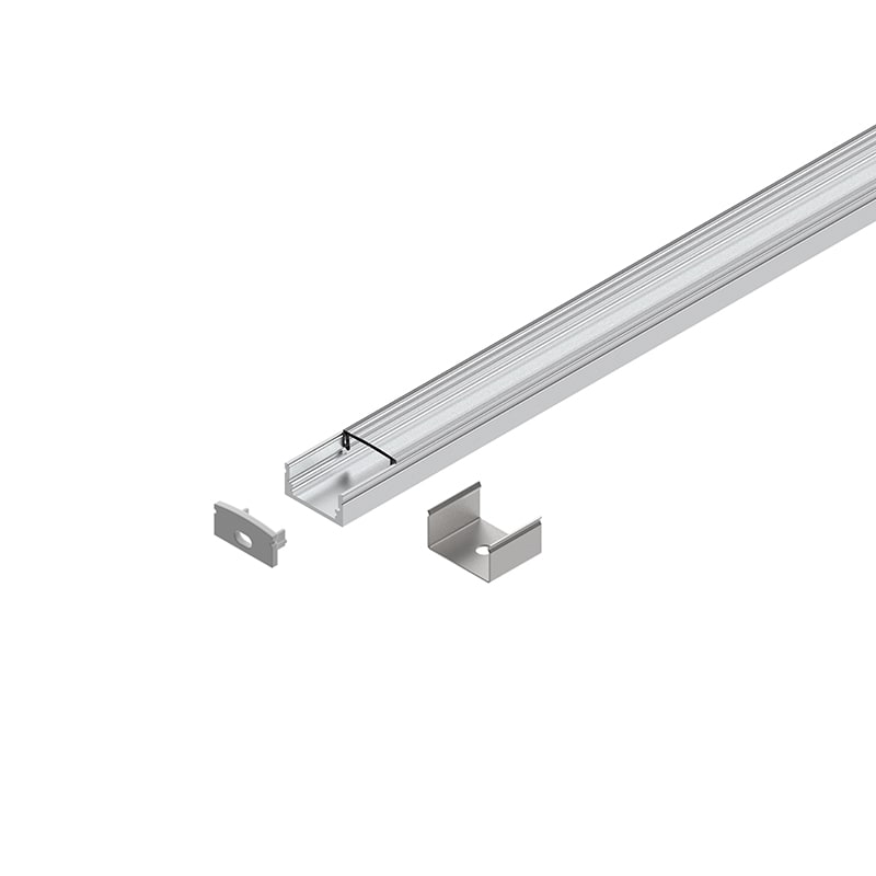 Profilo dissipante per Strip LED in lega di alluminio anodizzato naturale, testate di chiusura in polimero termoplastico, schermo diffusore ad inserimento a scatto in PMMA trasparente. Schermo diffusore, testate di chiusura e n?4 staffe di fissaggio inclusi. Strip LED e alimentatore 24Vdc da ordinare a parte. Non esporre a intemperie o luce solare diretta e non inserire in materiale isolante.