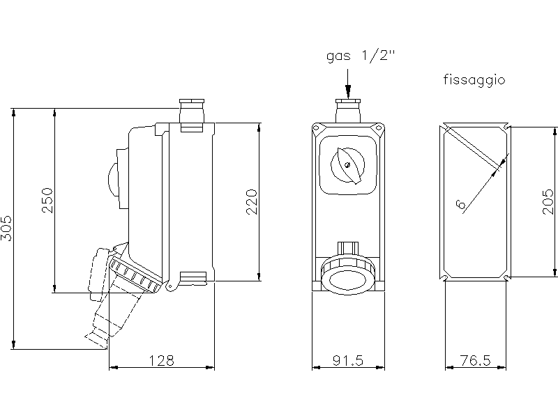 Presa da parete con interruttore di blocco e base portafusibili in contenitore modulare in lega di alluminio. IP 67 >>IK10. Fusibili tipo NDZ (E16) non in dotazione. Passaggio superiore finestra tipo F0. Manopola lucchettabile. Date le elevate doti di compattezza, è particolarmente indicata per installazioni in spazi ridotti (es. su pilastri, a bordo macchina).