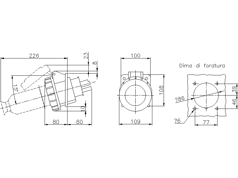 Dimensione della flangia verticale: