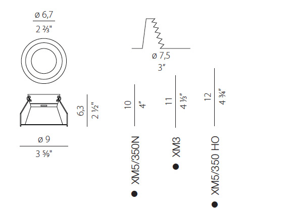 Apparecchio di illuminazione per installazione incassata a soffitto in ambienti interni, con emissione diretta. Struttura per l'incasso in controsoffitti fissi, in alluminio tornito con verniciatura poliacrilica in colore nero. Molla per l'aggancio dellasorgente luminosa in acciaio inossidabile. Molle per il fissaggio su controsoffitto in acciaio inossidabile. Potenza assorbita dal sistema max 50W. Efficienza luminosa 12lm/W. Sorgente luminosa LED retrofit alogena. Sorgente luminosa a corredo inclusa. Sorgenti compatibili LED retrofit bulb 7W GU10 3000K 36° Ra 80 600lm (no dimming) * max 50W GU10. Temperatura di colore 3000K Ra >80. Distribuzione luminosa fascio medio. Apertura fascio 36°. Alimentazione 220-240V AC. Frequenza 50/60Hz Flusso luminoso nominale 600lm