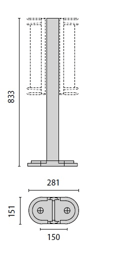 Palo 45 H800 costituito da: Palo in alluminio estruso verniciato predisposto per alloggiare uno o due apparecchi. Base di fissaggio a terra in alluminio pressofuso verniciato. Scatola di derivazione in alluminio pressofuso con morsetto a 4 poli 4 mm2 predisposta per collegamento in cascata. Colore: Antracite.