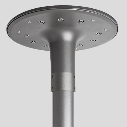 Apparecchio su palo per esterni per illuminazione generale, costituito da: Corpo in alluminio pressofuso verniciato in polvere poliestere. Attacco a palo in alluminio pressofuso verniciato polveri poliestere per pali Ø 60 - Ø 76 mm. Guarnizione in silicone antinvecchiamento. Pressacavo antistrappo M25x1,5 per cavi Ø 9 - Ø 14 mm. Connessione elettrica esterna tramite connettore stagno QUICK, completo di cavo. Le versioni LED sono fornite complete di alimentatore 220/240 V 50/60 Hz. Versione dimmerabile 1-10 V. Ogni LED è accoppiato con un dispositivo elettronico di di sicurezza (NUD) in grado di by-passarlo in caso di guasto. Viteria esterna in acciaio inox. Sistema "SECURE LIGHT DISTRIBUTION"che garantisce l'uniformità della distribuzione luminosa anchein caso di inefficienza di qualche. LED. Processo di verniciatura in 13 differenti passaggi in polveri di poliestere ad alta resistenza contro raggi UV ed agenti atmosferici. Classe II. Attacco: LED. Watt: N. 6 LED - 11 W. Colore: ANTRACITE METALLIZZ. OPACO. Classe isolamento: II. KELVIN: 4000. IK: IK10 20J xx9. Ottica: OTTICA CIRCOLARE EXTRA DIFFONDENTE. Flusso nominale: 1122 lm. Flusso effettivo: 703 lm. Lifetime: 60000 h. L: 80.
