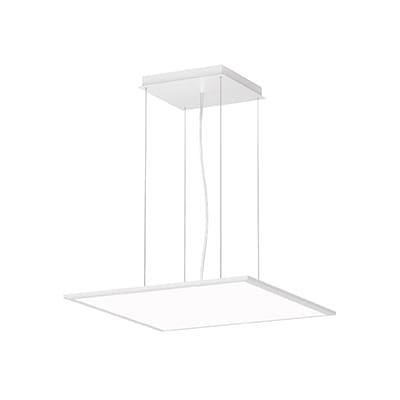 FL600PL LED OPAL COVER CORONA - Apparecchio LED quadrato a sospensione per interni, composta da: Corpo in alluminio estruso, verniciato. Tecnologia Sidelight LED e ottica di orientamento in tecnopolimero per una distribuzione luminosa omogenea sull'intera area diffondente. Diffusione luminosa diretta e leggera retroilluminazione. Ottica diretta principalmente simmetrica 2 x 56°. Indice di resa cromatica > 80. Tolleranza cromatica (MacAdam) = 3 SDCM. Tecnologia Sidelight LED per una distribuzione luminosaomogenea sull'intera area diffondente. Completo di sospensione in cavo d’acciaio (1,5 m), cavo di alimentazione trasparente e rosone. Completo di alimentatore elettronico. LED 45W 6310lm 4000K CRI 80. Colore: Bianco RAL9016 / Goffrato.