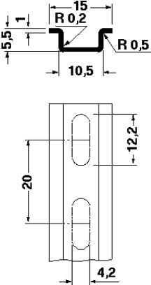 Guida di supporto forata, Profilo standard, larghezza: 15 mm, altezza: 5,5 mm, a norma EN 60715, materiale: Acciaio, zincato, passivato a strato spesso, lunghezza: 2000 mm, colore: color argento