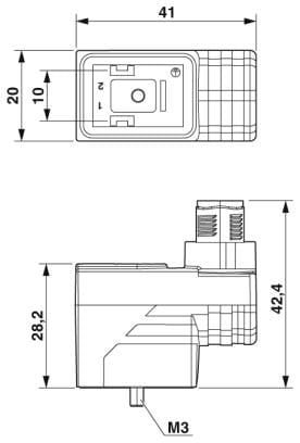 Connettore per valvole, 3-poli, Maschio diritto M12, codifica A, su Connettore per valvole B (10 mm), con 1 LED, collegato con Diodo Z