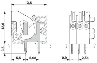 Angolo circuito stampato/collegamento del conduttore - 0°/180° (orizzontale)