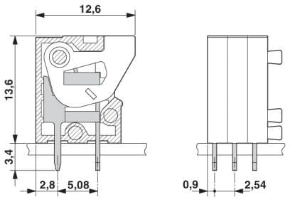 Angolo circuito stampato/collegamento del conduttore:
