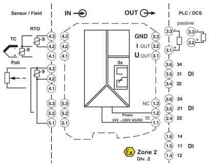 Fino a SIL 2 secondo EN 61508. Installazione in zona 2, tipo di protezione ammessa "n"(EN 60079-15).