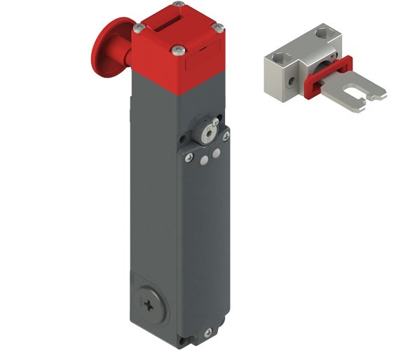 Interruttore di sicurezza ad azionatore separato con blocco serie FG, Modalit? lavoro: Principio D, azionatore bloccato ad elettromagnete diseccitato, Grado di protezione: IP67 secondo EN 60529 con pressacavo avente grado di protezione uguale o superiore, Custodia: Custodia in metallo, tre entrate cavi filettate M20x1,5, Unit? di contatto: 1NO mosso dall'azionatore e 1NO+2NC mossi dall'elettromagnete, Testa: Testa orientabile con pulsante antipanico, Alimentazione: 24 Vac/dc, LED: Senza LED, Azionatore: Completo di azionatore universale VF KEYF28, Apertura positiva: S?.