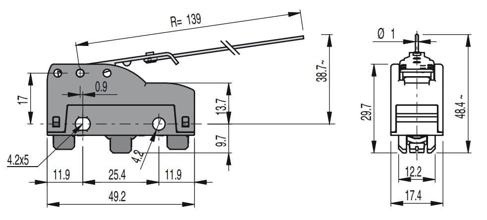 Lunghezza del sensore - 49.2 mm