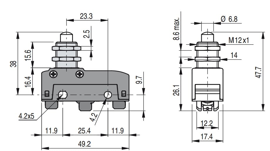 PIZZATO ELETTRICA S. - PZZMK V12D10 MICROINTERRUTTORE A PULSANTE FILETTATO - MK V12D10