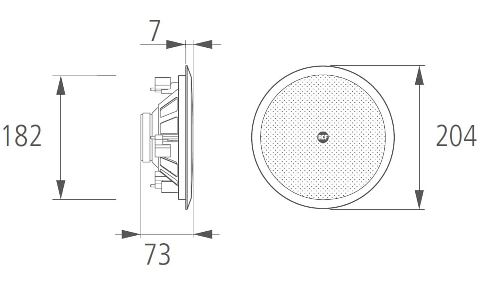 Diffusore acustico a plafoniera dal design elegante ed esclusivo, indicato per essere installato ad incasso in controsoffittature o pannelli. Impiega altoparlante da 160 mm-6” con tweeter coassiale da 25 mm (1”) montato su un supporto a ponte. È corredato di un trasformatore di linea che consente il collegamento diretto ad impianti a tensione costante a 70 V o 100 V. Grazie alle prese multiple del trasformatore di linea è possibile selezionare la potenza da diffondere fra diversi valori disponibili. L’installazione a soffitto è semplice e veloce grazie ad un particolare sistema a tre ganci rotanti che evita l’impiego di viti e tasselli o altri elementi di fissaggio.