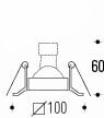 incassi orientabili per lampade alogene a bassa tensione con riflettore incorporato. Orientamento Verticale 30°. Glow wire (°C) => 850° - in conformità alla norma IEC EN 60598-1:2008 Annex ZC (13.3)