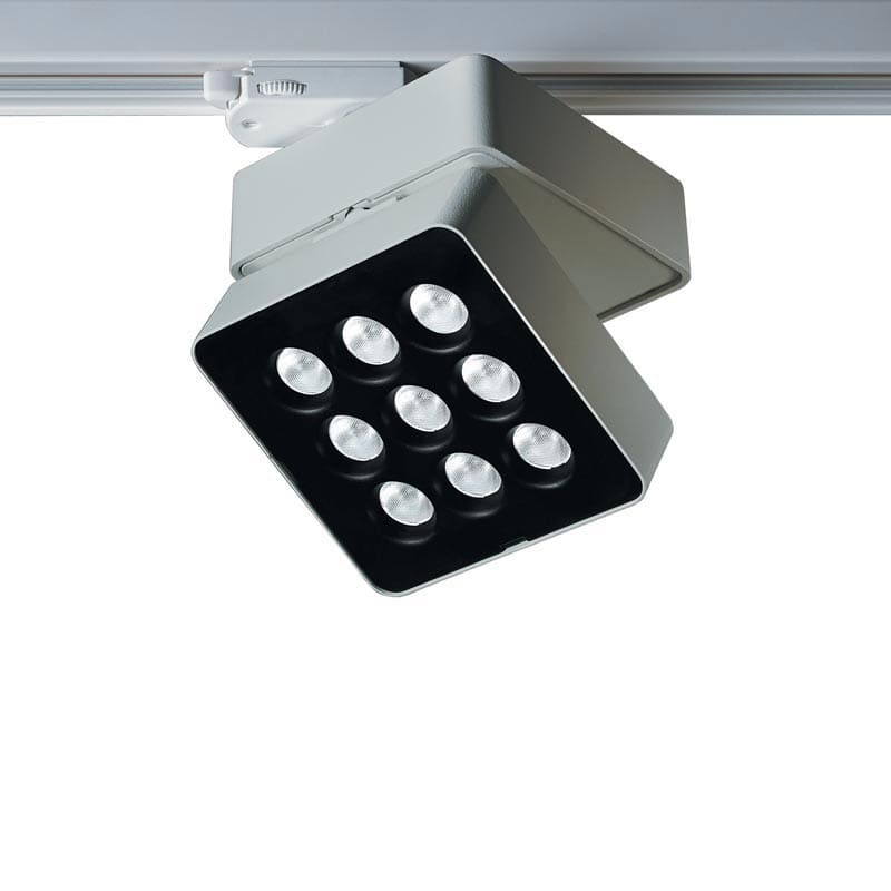 Corpo: Alluminio pressofuso e Termoplastico. Orientamento 290° sull’asse orizzontale, 90° sull’asse verticale. Sorgente luminosa LED LUCE (17W 1235lm 3000K CRI 90). Tecnologie di alimentazione Driver dimmerabile. Consumo Totale LED LUCE + Driver = 21W. Installazione Apparecchi completi di adattatore per l’applicazione su binario a 3 accensioni. Glow wire (°C) => 850° - in conformità alla norma IEC EN 60598-1:2008 Annex ZC (13.3). Sicurezza Fotobiologica GRUPPO 0 - ESENTE DA RISCHI, in conformità alla normativa EN 62471:2008. Fascio di luce 7°. Versione DALI.