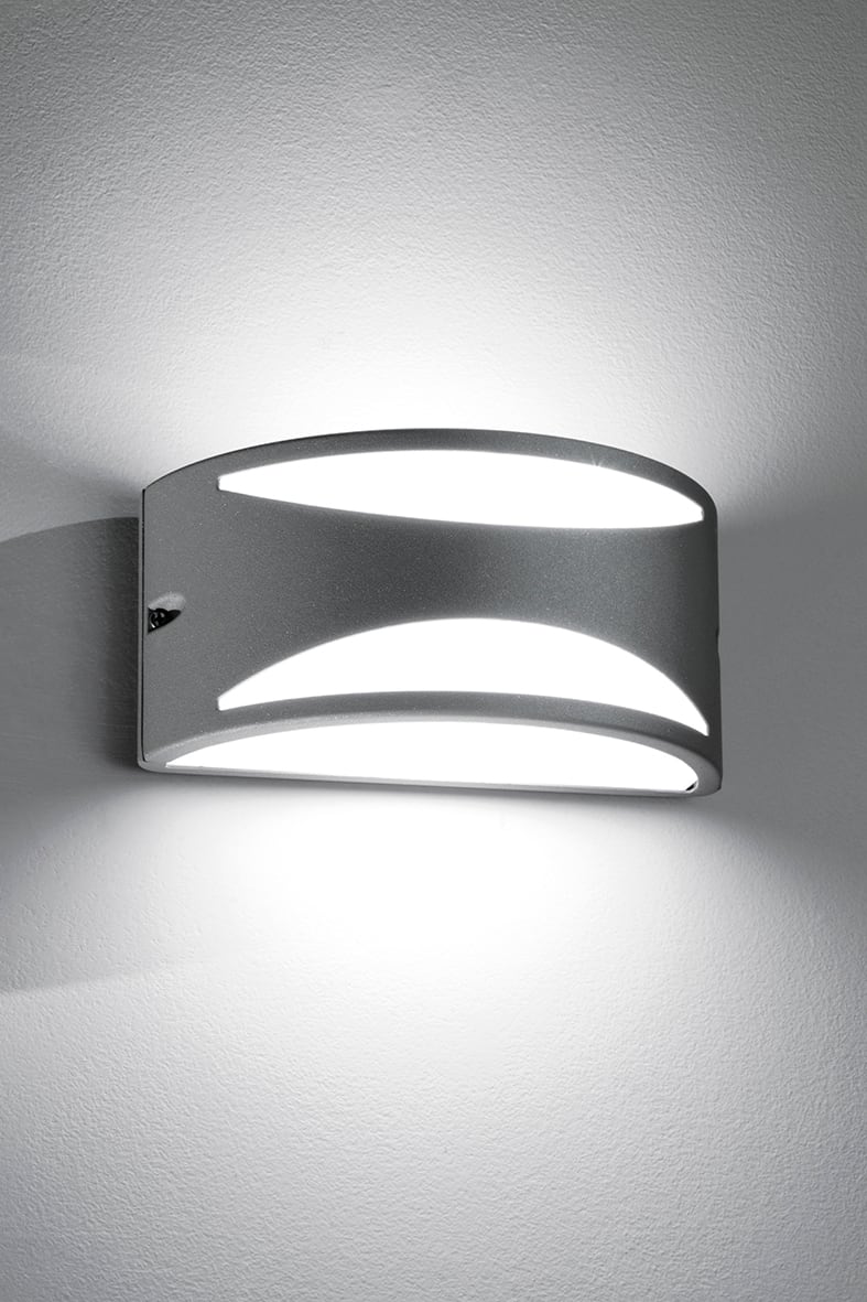 Apparecchio a parete per esterno (IP54) con attacco E27 che consente di montare lampadina LED. Strut tura in pressofusione di alluminio verniciato conpolveri poliestere a elevata resistenza ai raggi ultravioletti e alla corrosione, diffusore in policarbonato. Disponibile nella versione con effetto tutta luce, con luce diffusa e protetta o nella versione biemissione. Proposto in tre finiture: bianco, grigio, antracite. Disponibili giunti certificati IP68 per la realizzazione delle connessioni elettriche, sicure, durevoli e con barriera anticonde nsa.