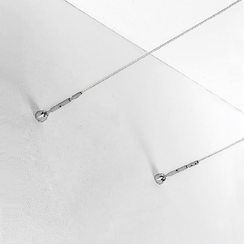 Sistema a tesata con coppia di cavi con interasse160mm: permette di installare apparecchi con fonte luminosa con LED integrato o con attacco tradizionale (GU10, R7s, E27 che consentono di montare lampadina LED). Corpi illuminanti da posizionare secondo le esigenze di installazione in estruso di all uminio (verniciato bianco opaco o grigio opaco) ediffusore in policarbonato. Disponibili in versione luce diffusa, monoemissione o biemissione o a sp ot con corpo illuminante orientabile su due assi.LED disponibile in due gradazioni (3000K e 4000K).